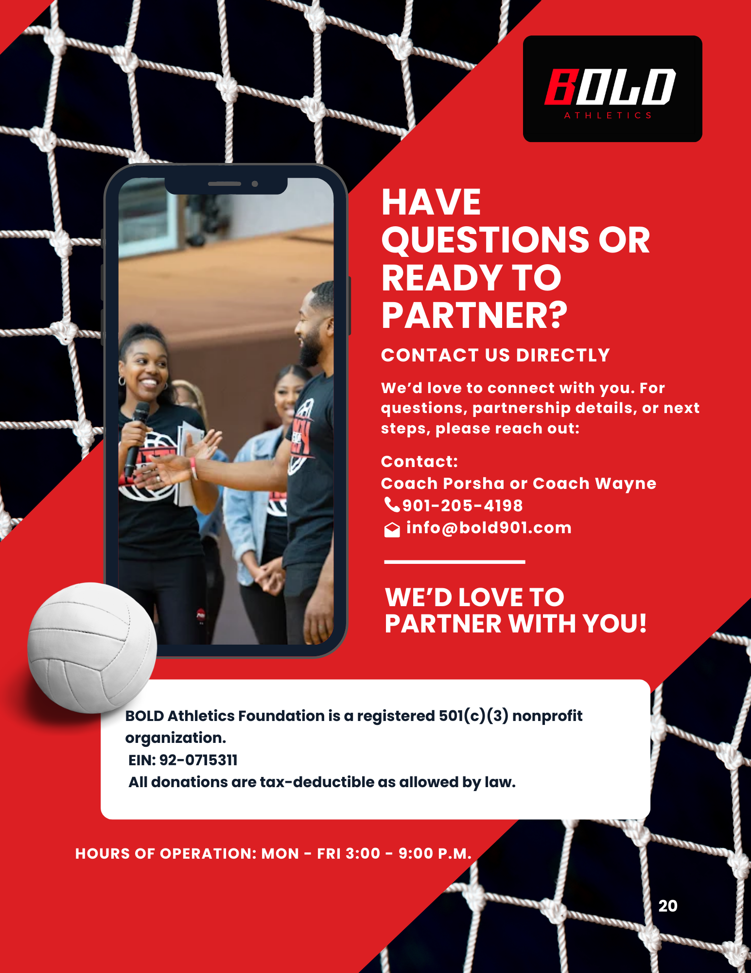 The objective was to position BOLD Athletics as both a high-performance training organization and a mission-driven nonprofit, while creating a structured framework that made partnership decisions straightforward for local businesses and corporate sponsors.